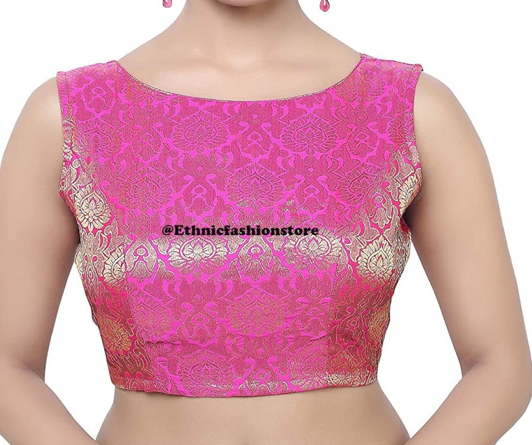 Hot Pink Banarasi Sleeveless Saree Blouse Saree Blouse Ready Etsy Canada